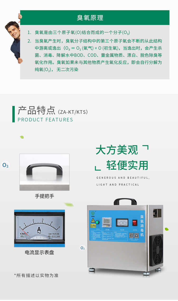 中澳达手提式小型家用臭氧发生器陶瓷片杀菌消毒立式臭氧机
