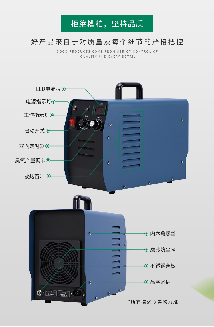采用高纯度陶瓷管状材质臭氧发生器装置磨砂防尘网守护散热百叶